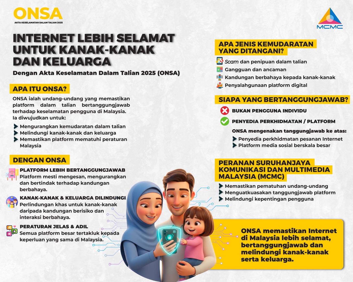 Akta Keselamatan Dalam Talian 2025 (ONSA) memperkukuh tanggungjawab platform digital demi keselamatan pengguna. Perlindungan kanak-kanak diutamakan, kandungan memudaratkan wajib ditangani. Keselamatan dalam talian bukan pilihan, ia tanggungjawab bersama. Maklumat lanjut mengenai ONSA boleh didapati di laman sesawang MCMC di https://mcmc.gov.my/en/onsa/home […]